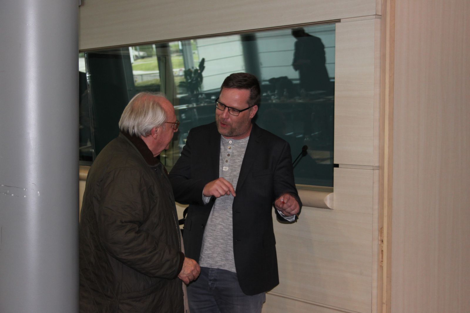 Na obrázku Saša Bolcek v rozhovoru s Rolfem Willekem