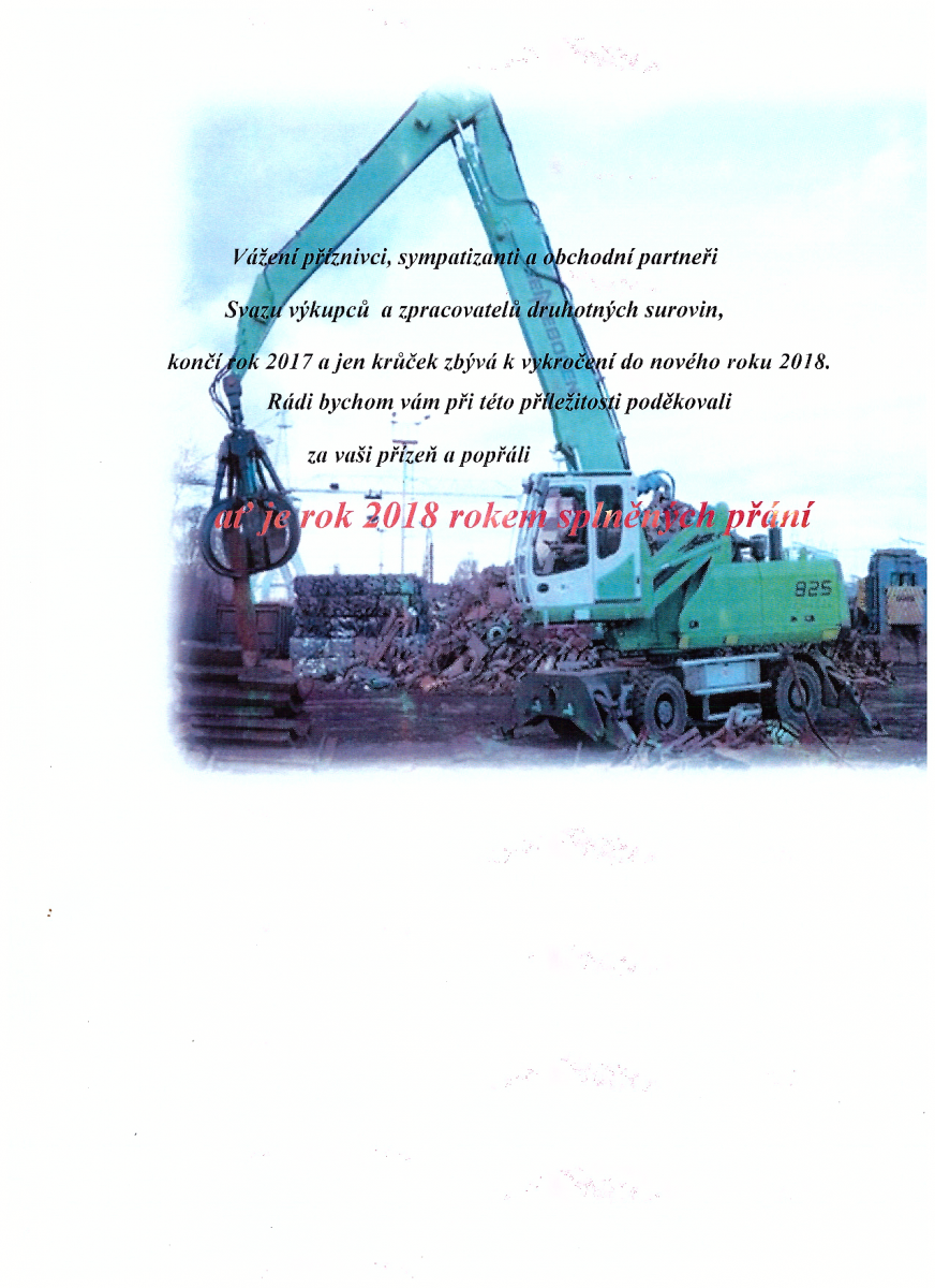V měsící řijnu plánujeme exkurzi do německého Espenhainu, kde společnost Scholz AG provozuje jeden z nejmodernějších šrédrů v Evropě. Termín exkurze a další podrobnosti budou oznámeny po sdělení vedení firmy Scholz o možných termínech exkurze. Žádáme zájemce o exkurzi, aby se přihlásili nejpozději do 25. 9. 2017 mailem na svds@svds.cz